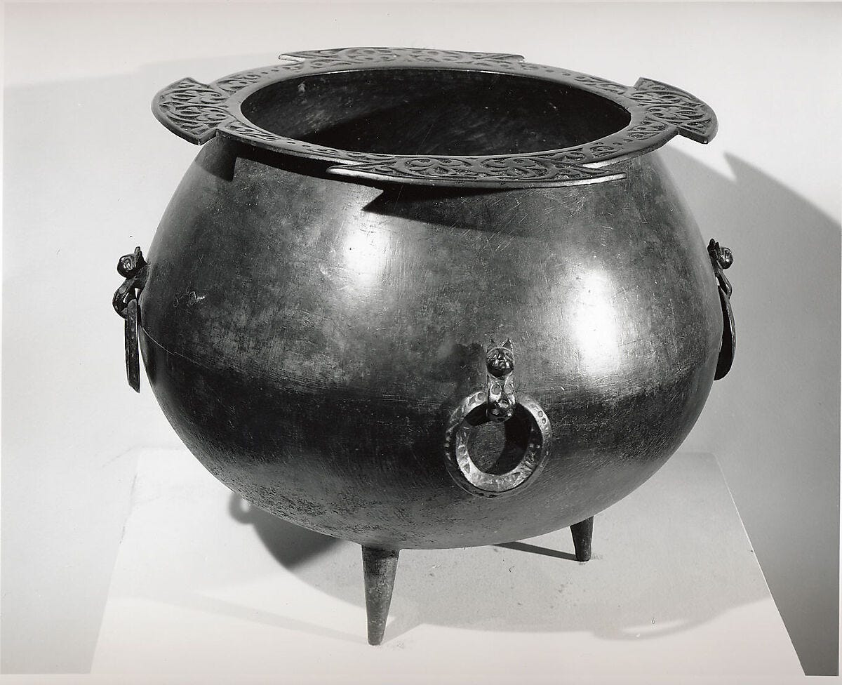 Cauldrons are an ancient symbol of the Great Mother’s womb. Speaking of Macbeth’s witches, archeologists have found the bones of reptiles among the remains of many potent teacher plants in the bottom of ancient cauldrons. And there are some psychoactive reptiles and amphibians… Eye of newt, anyone?